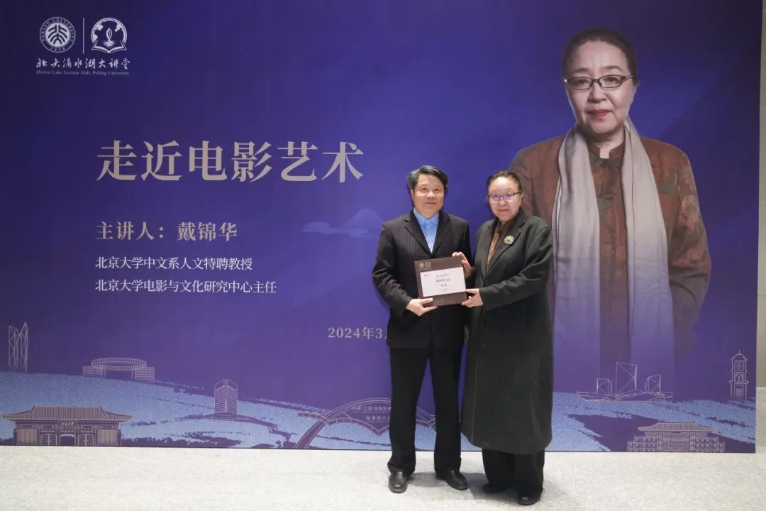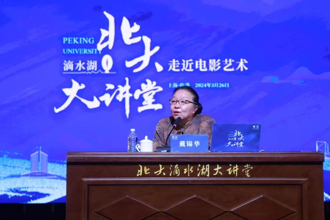 On March 26th, 2024, the eighth lecture of the Peking University Dishui Lake Lecture Hall (PKU-DSLLH) was successfully held. Professor Dai Jinhua, Peking University Professor of Humanities of Department of Chinese Language and Literature and Director of the Film and Culture Research Center of Peking University, was invited to give a special lecture on Approaching the Art of Cinema(《走近电影艺术》). She elaborated on the functions of film art to date, the significance of the film screen, and the "parallelogram" elements that constitute film art, opened up a journey of thought about light and shadow in the world of cinema at Lingang Performing Arts Center.