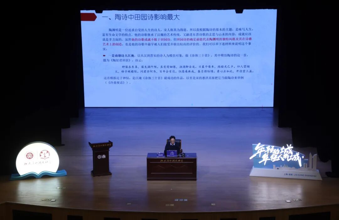 At the lecture, Prof. Qian first traced the origins and evolution of ancient Chinese pastoral poetry, elucidating how the development of agrarian civilization profoundly influenced the literary tradition of pastoral writing and its deep-rooted impact on Chinese culture. He then comprehensively analyzed Tao Yuanming's devotion to pastoral themes—examining the historical context and motivations behind his poetic creations—and dissected the duality of joy and sorrow in Tao's works, highlighting their allusive beauty and artistic mastery in scene depiction. Finally, he explored Tao's monumental influence on later generations of pastoral poetry, providing insights for Lingang Special Area to inherit China's cultural heritage and cultivate patriotism.
