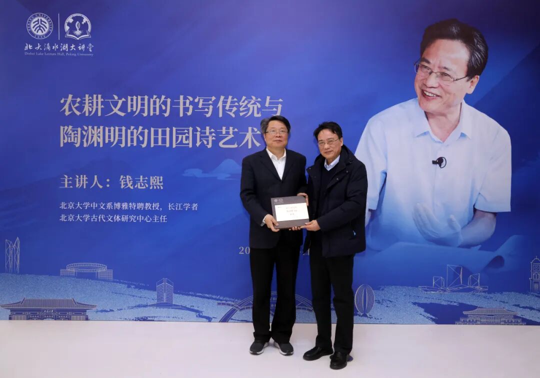 Last night (January 14), the 18th lecture of Peking University Dishui Lake Lecture (PKU-DSLLH) was successfully held. Qian Zhixi, Boya Chair Professor, Changjiang Scholar, and Director of the Center for Ancient Literary Genres Studies(古代文体研究中心)at Peking University, was invited to deliver the special lecture The Literary Tradition of Agrarian Civilization and Tao Yuanming's Art of Pastoral Poetry at the Dishui Lake Theater.