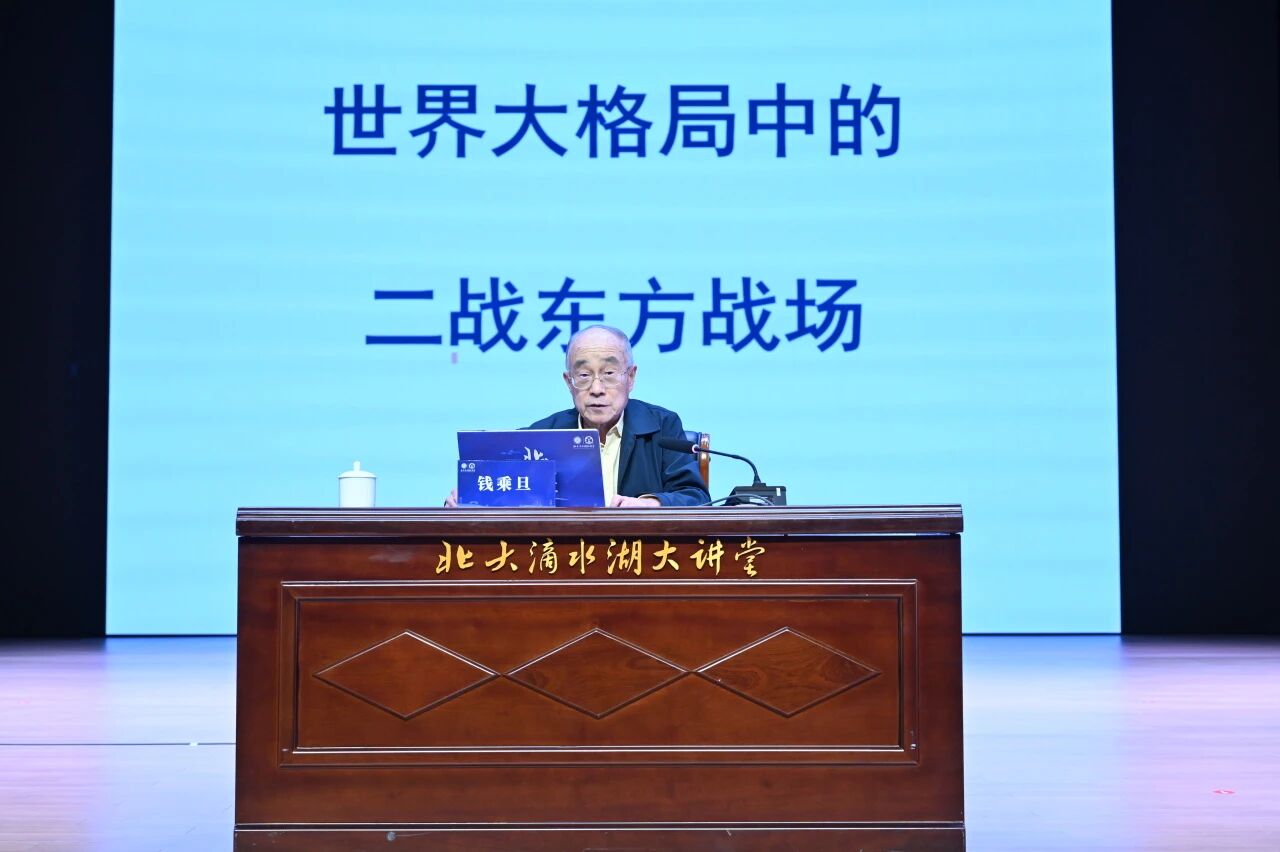 The 26th lecture of Peking University Dishui Lake Lecture Hall (PKU-DSLLH)was successfully held at the Dishui Lake Theater last night. Professor Qian Chengdan, a Boya Chair Prof.of Peking University, was invited to deliver a special lecture titled "The Eastern Battlefield of World War II in the Global Pattern".