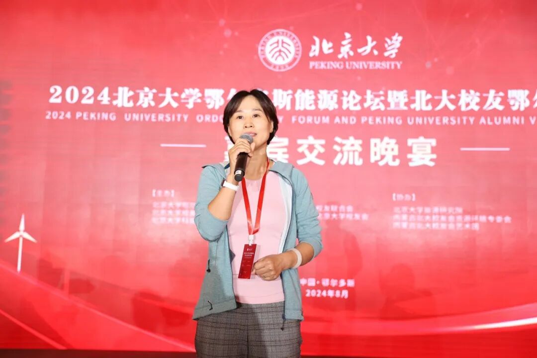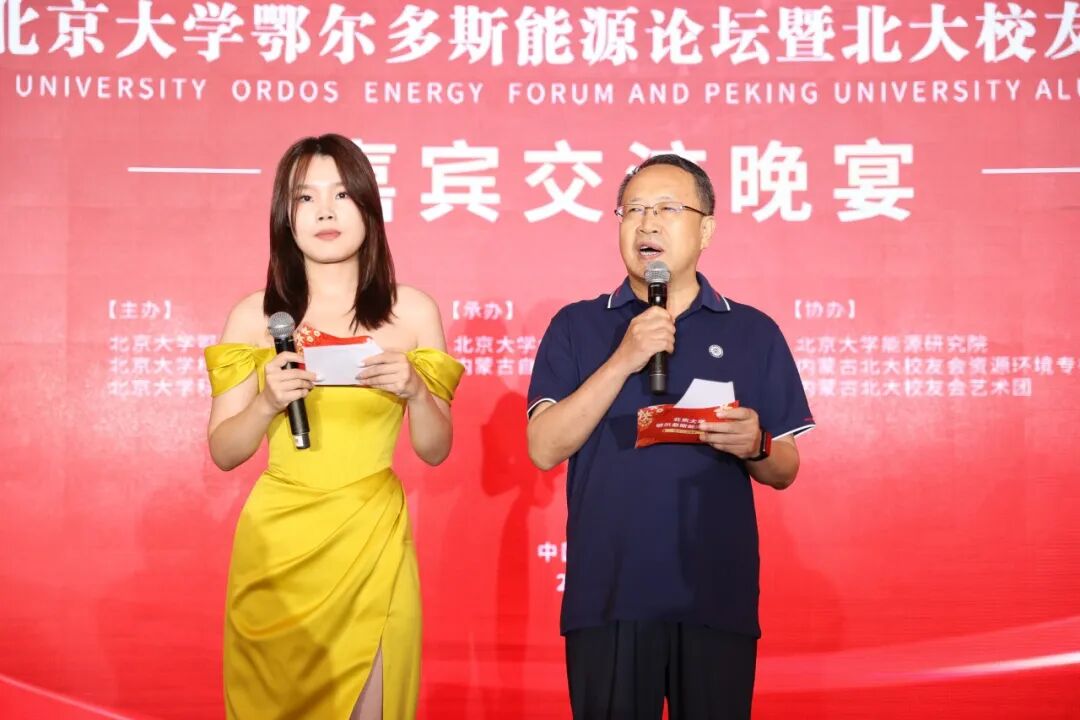 内蒙古自治区北京大学校友会常务副会长兼秘书长郭连恒与北京大学鄂尔多斯能源研究院宗庸卓玛主持晚宴