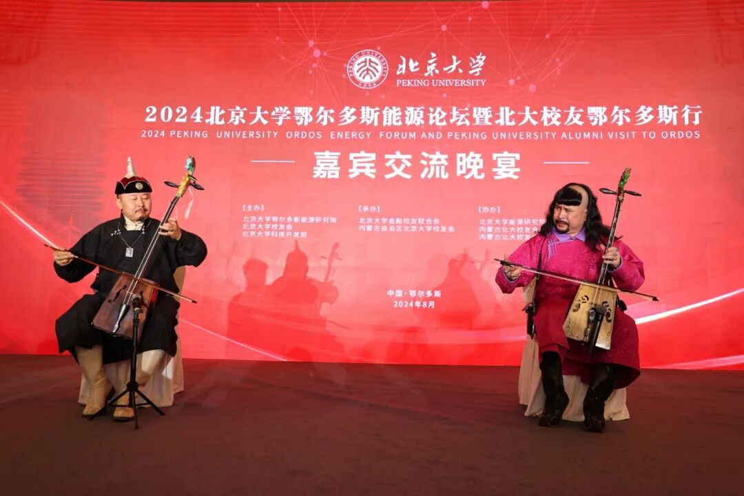 本次论坛活动既是一次能源领域的行业盛会,同时也是北大能源行业校友们与鄂尔多斯的一次“双向奔赴”。5日晚,与会的北大校友和论坛嘉宾通过交流晚宴的形式进一步加深了相互了解,也推动了更多的交流与合作。北京大学校友办主任、北京大学校友会副会长兼秘书长李文胜,北京大学鄂尔多斯能源研究院常务副院长马开华,北京大学科技开发部异地科研机构管理办公室主任王新茹,内蒙古自治区北京大学校友会会长蔚然风分别代表主承办方致辞。内蒙古自治区北京大学校友会艺术团和资源环境专业委员会为晚宴也献上了富有民族特色的精彩节目。