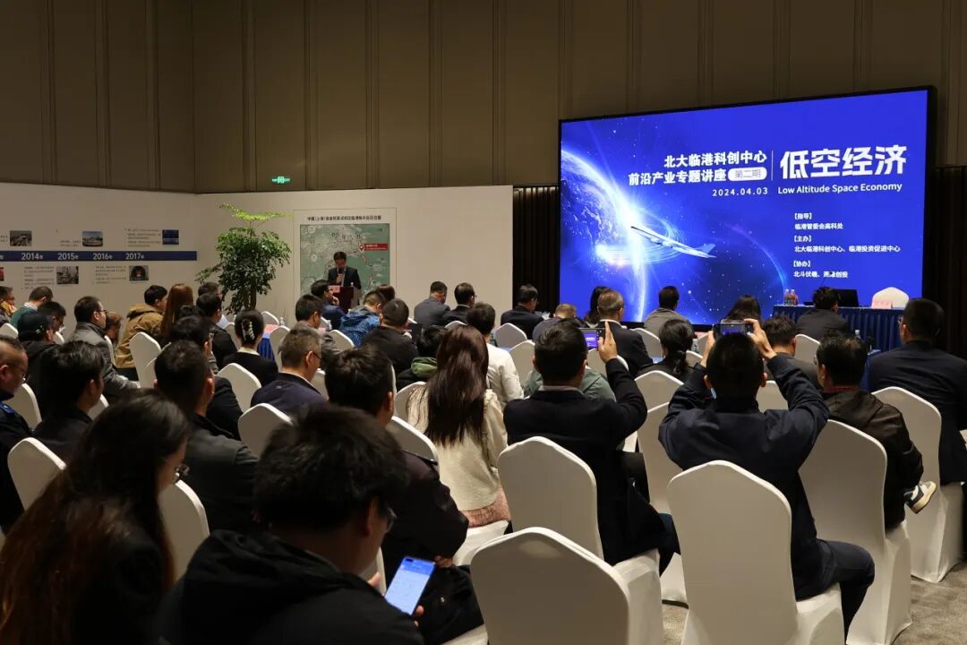 公开课上,中心执行主任王宇向到场观众介绍了中心概况和低空产业布局,并对北大临港融合飞行示范平台源起、平台定位、“1+6”产业促进模式等进行了详细说明。