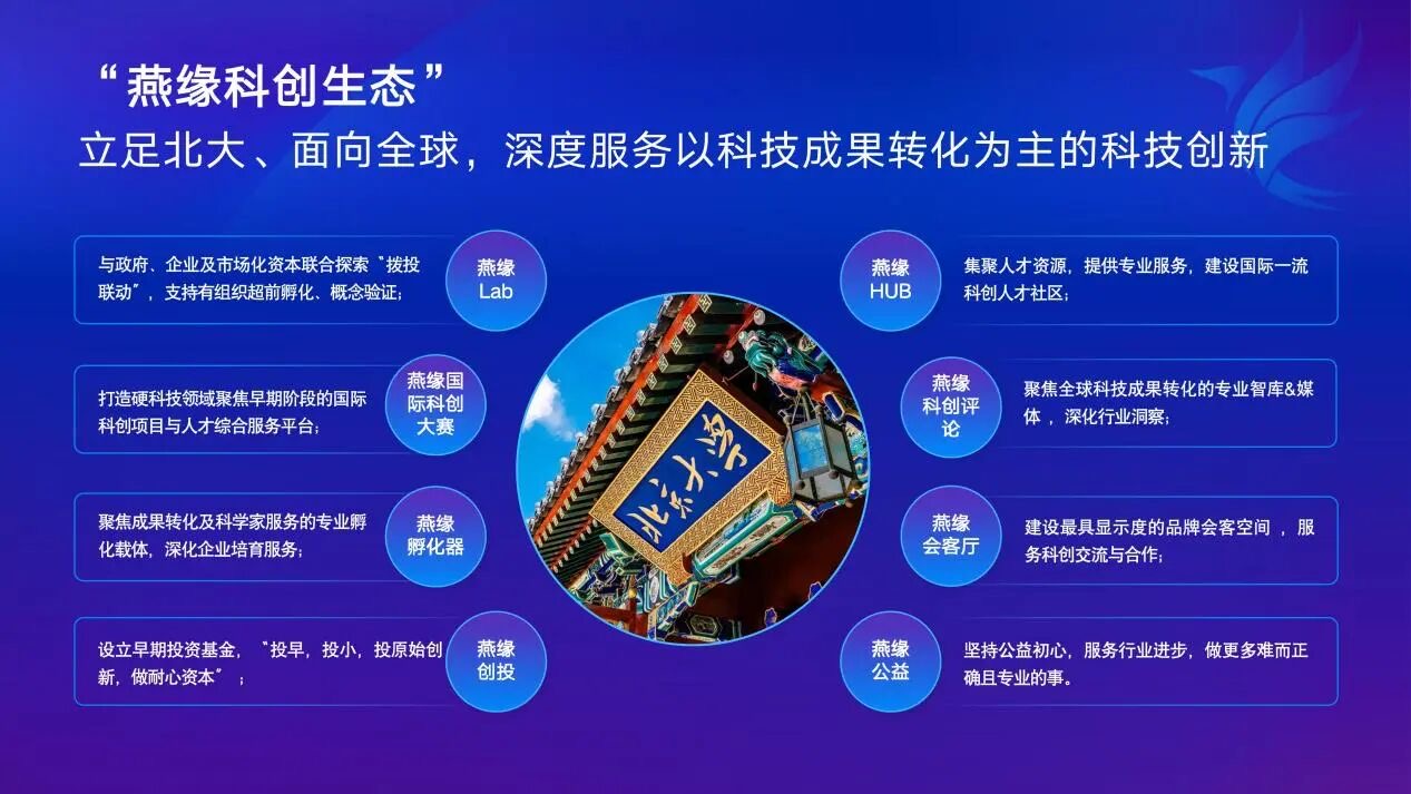 截至目前,“燕缘 Lab”版块已有多家地方政府和领军企业有意合作概念验证基金或基地;“燕缘国际科创大赛”也率先从上海临港启动,后期将拓展到海内外若干城市,不断汇聚高质量项目和高水平人才;“燕缘孵化器”总部已在北京鼎好 DH3 大厦落地,已率先与北创投、上海科创集团、广州金控基金、深圳天使母基金、华泰联合证券、中信建投证券等知名机构建立战略合作,首批高质量入孵项目已完成筛选;未来,燕缘孵化器将进一步发挥京沪两地协同创新优势,进一步放大汇聚和培育早期项目的平台功能,服务包含北大临港科创中心在内的北大异地科研机构,服务校友科技创新创业,服务地方经济发展; “燕缘创投”也将以“孵投联动”、“拨投联动”等机制进一步挖掘、投资优质项目;“燕缘 HUB”集聚科创人才与产业人才,社区初具规模;“燕缘科创评论”做好成果转化智库,服务行业发展;“燕缘会客厅”为北大师生、校友和北大之友陆续提供交流空间;“燕缘公益”将持续推出公益讲座、科普活动、产业论坛等服务项目,适时反哺学校发展……