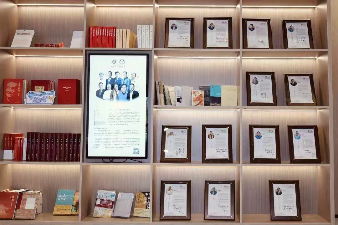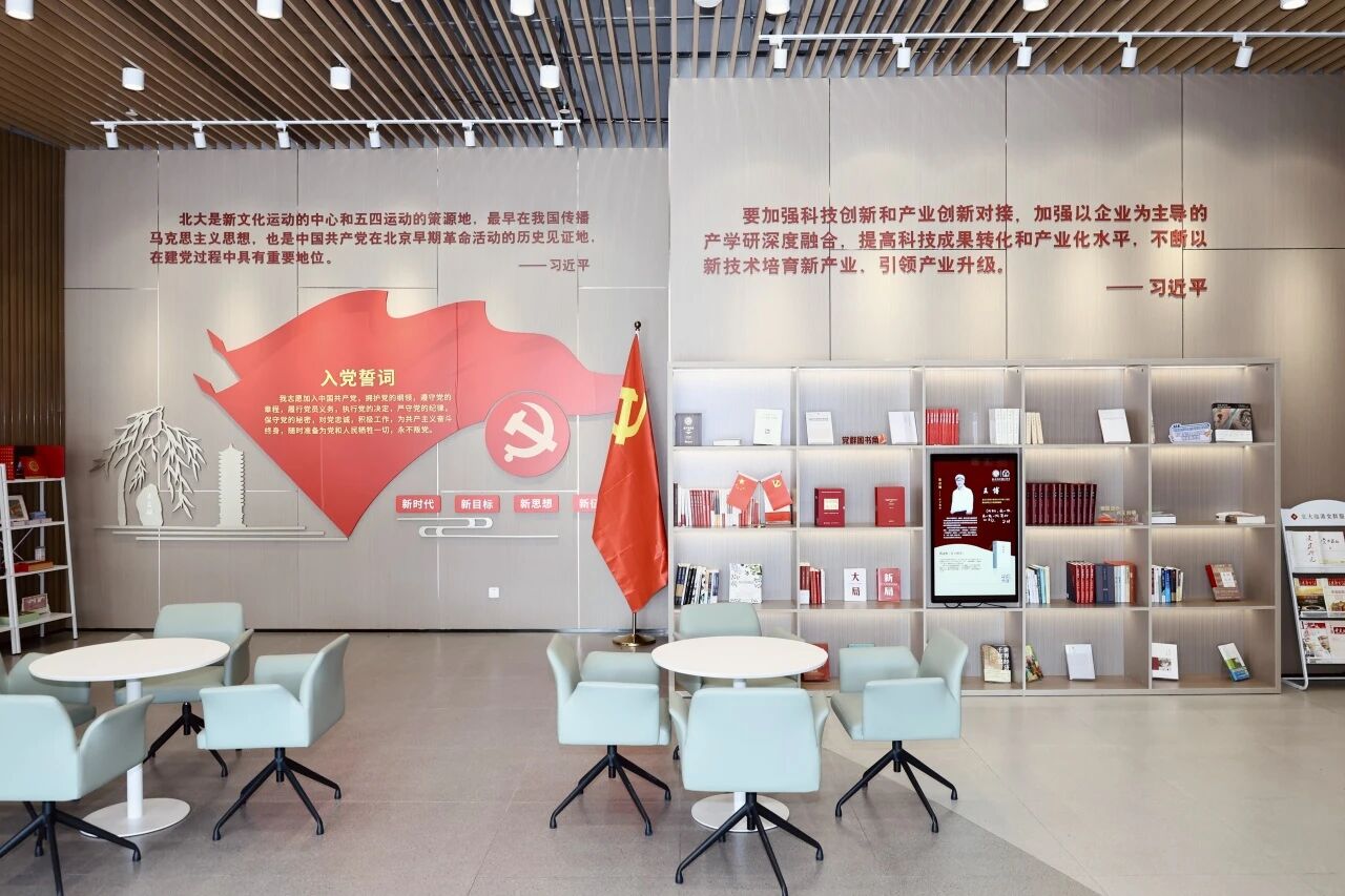 设立面向公众免费开放的阅读沙龙区域,汇集百种红色文化与党建书籍,遴选北大出版社好书、新书进行推介,展示北京大学马克思主义学院编撰的《马藏》等重点研究成果,陈列“北大滴水湖大讲堂”系列讲座《讲给年轻人的北大人文课》。