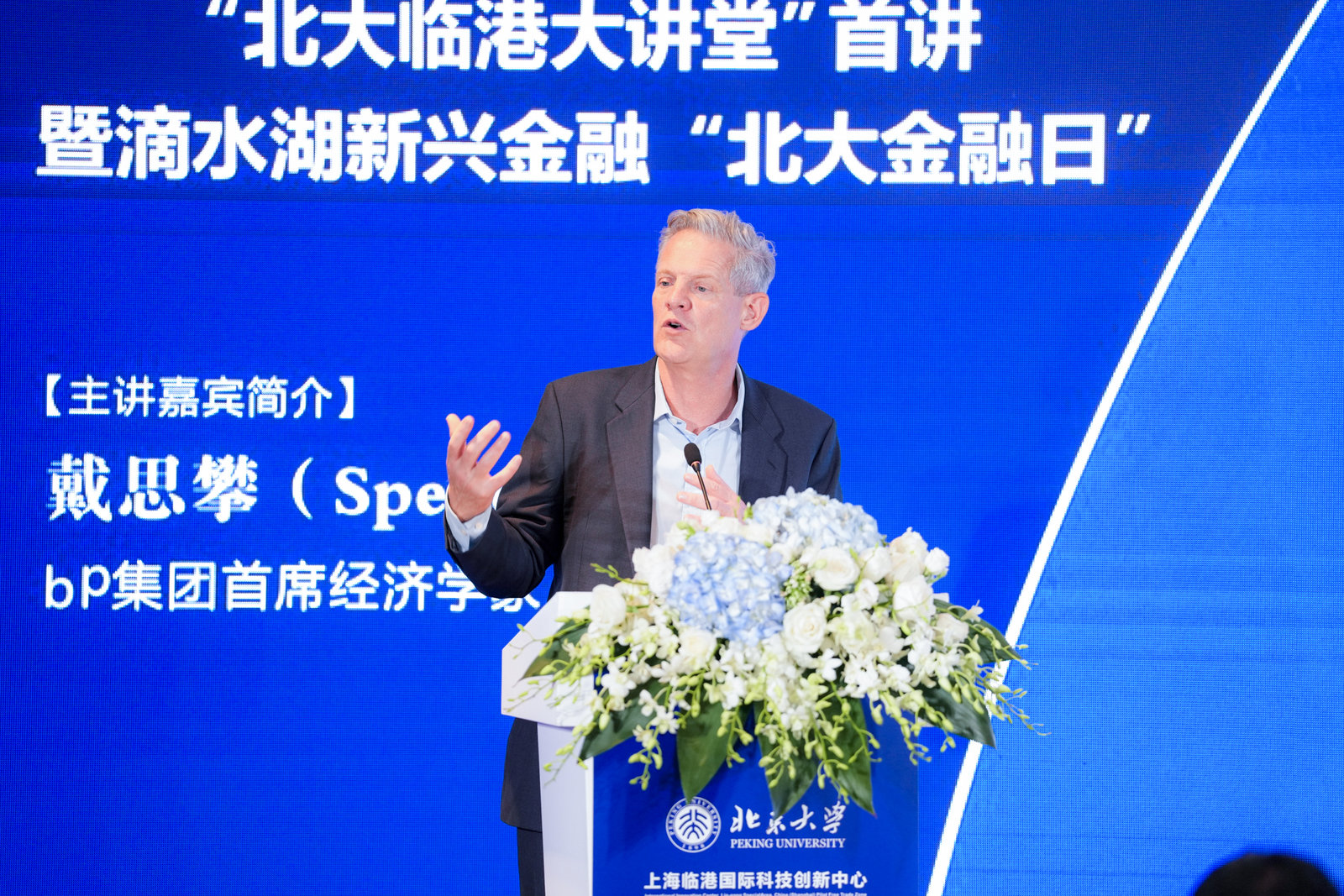 The first session addressed the topic "FinTech and Global Energy Trends in the Context of Carbon Peak and Carbon Neutrality". By special invitation, Mr. Spencer Dale, chief economist at bp, delivered a lecture. Spencer Dale has been leading bp's global team of economists and energy analysts for a long time and is committed to advising on and analyzing the international energy system, energy transition and the net-zero future of the energy system. Before bp, he served as managing director for financial stability at the Bank of England and a member of the Monetary Policy Committee; before that, he was senior advisor to the US Federal Reserve from 2006 to 2008. In his lecture, Spencer discussed four megatrends in the global energy system by citing the world’s recent energy data, looked ahead to China's energy development, and suggested strategies for low-carbon transition and other issues.
