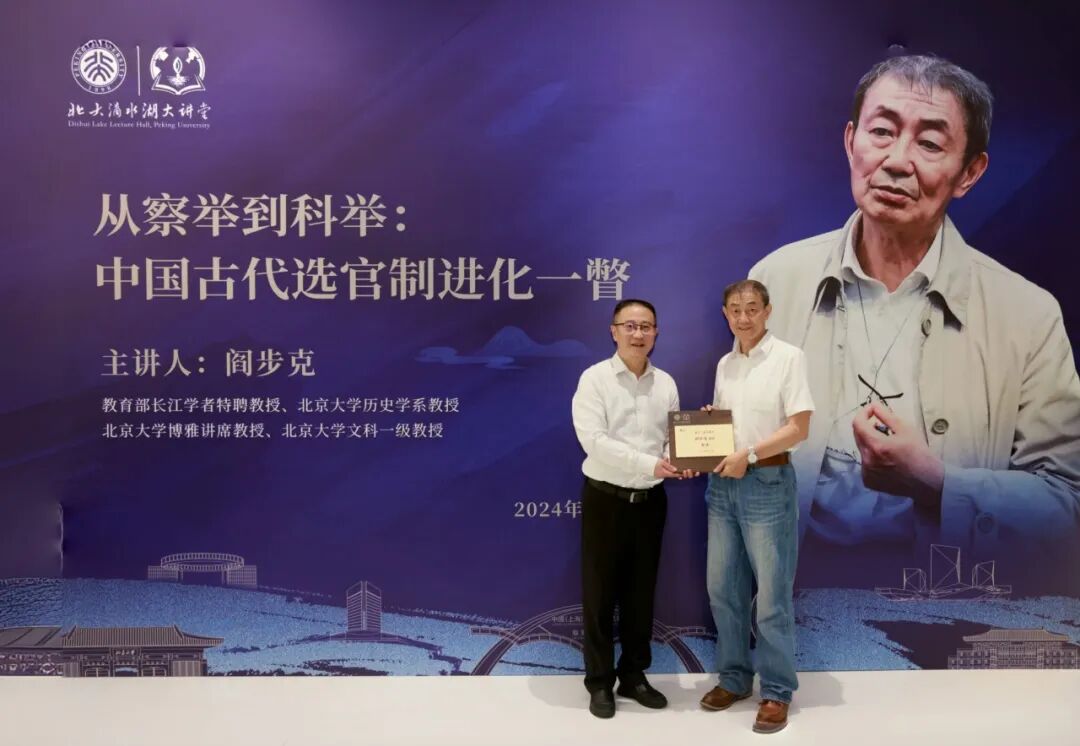 On the evening of June 11, 2024, the eleventh lecture of PKU-DSLLH was successfully held. Professor Yan Buke, Changjiang Scholar Distinguished Professor of the Ministry of Education (China) and a Peking University Boya Chair Professor, was invited to deliver a special lecture titled From Chaju System (recommend prospective government officials based on their filial morality and honesty) to the Imperial Civil Examination System: A Glimpse into the Evolution of the Ancient Chinese Officials Selecting System (《从察举到科举——中国古代选官制进化一瞥》). The lecture took place in the art gallery on the 8th floor of the Harbour City Square Culture and Art Center, taking the audience on a journey to the exploration of the ancient officials selecting system of China.