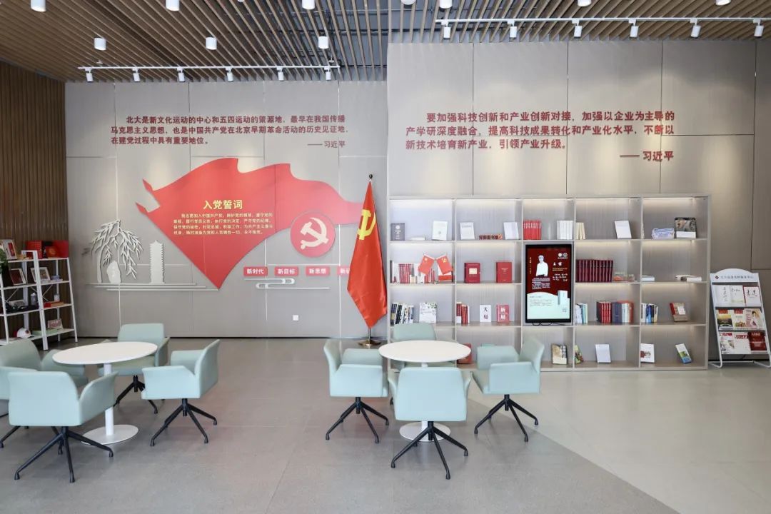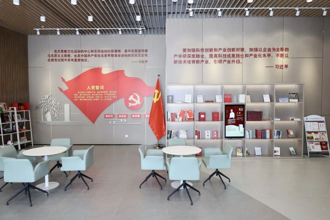 Peking University Lin-gang Party-Mass Service Center has established a free reading salon for the public, featuring hundreds of books on “red culture” and Party building. There is a special section for works written by PKU-DSLLH lecturers and recommended books published by Peking University Press. The service center also exhibits Marxism research achievements such as