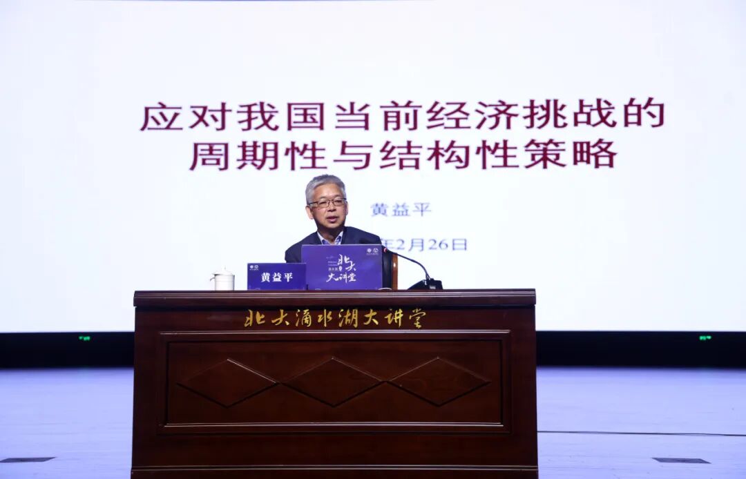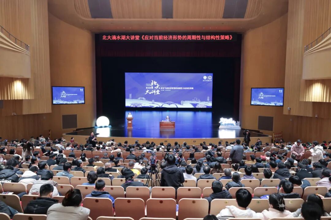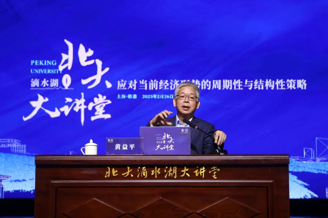 Last night (February 26), the 19th lecture of Peking University Dishui Lake Lecture (PKU-DSLLH) was successfully held. Huang Yiping, Boya Chair Professor and Dean of the National School of Development at Peking University, was invited to deliver a special lecture titled Cyclical and Structural Strategies for Navigating Current Economic Challenges at the Lingang Performing Arts Center.