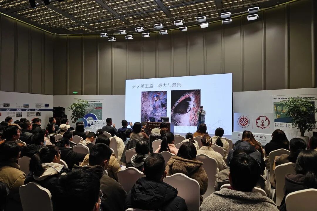 讲座现场,杭侃教授通过丰富的图片、详实的资料,重点结合敦煌、云冈、龙门、大足四大石窟,阐述石窟与中国文化之间的密切联系。我国石窟寺范围广、规模大、体系全,集建筑、雕塑、壁画、书法等艺术于一体,充分体现了中华民族的审美追求、价值理念、文化精神。