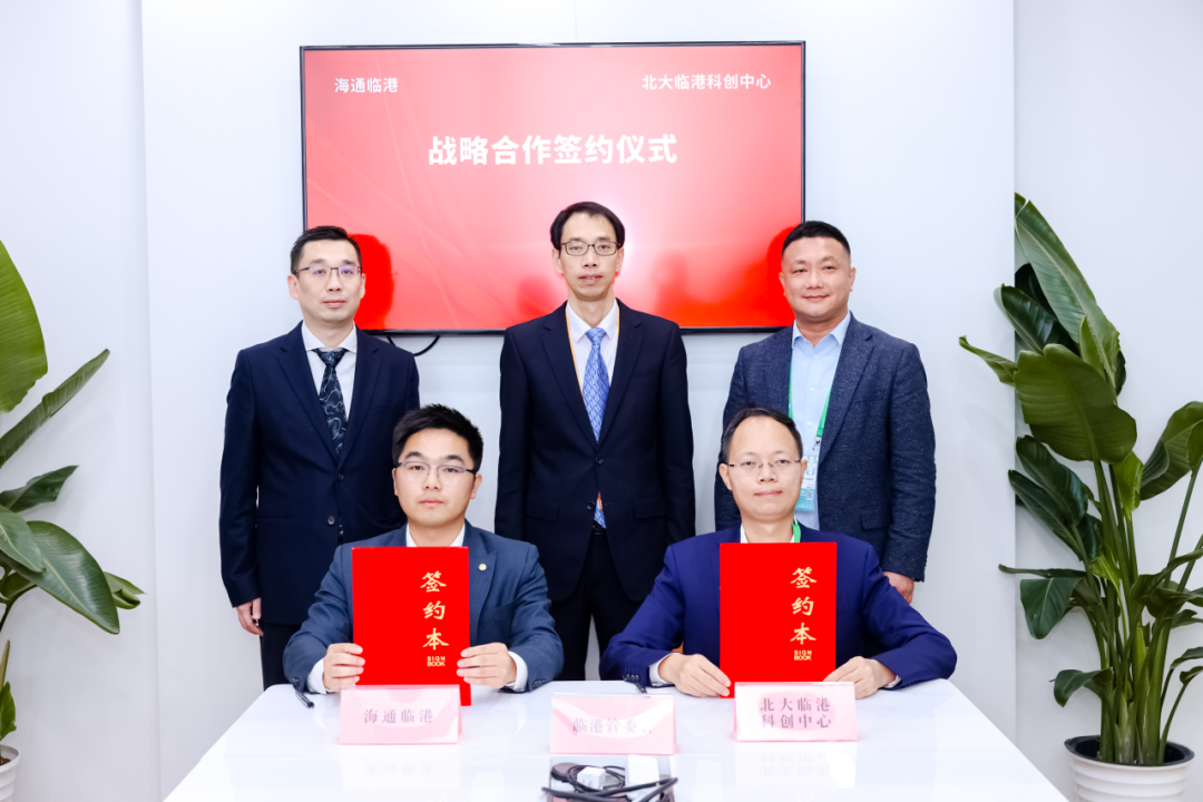 11月7日下午,北京大学上海临港国际科技创新中心在第六届进博会临港展示区与海通证券股份有限公司上海临港分公司举行战略合作协议签约仪式。临港新片区党工委委员、管委会专职副主任唐浩,北大临港科创中心执行主任王宇、主任助理张炜炜,海通证券上海分公司副总经理于涵、临港分公司副总经理胡李祥出席签约仪式。