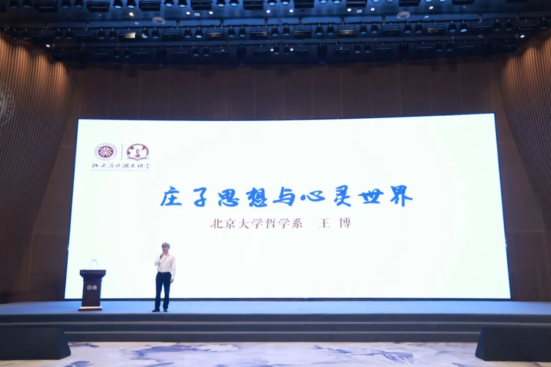 启动仪式后,北京大学党委常委、副校长、教务长王博教授主讲首场讲座——《庄子思想与心灵世界》。王博教授以独特的生命和独特的心灵开篇,提到了变化无常、安之若命、物物而不物于物,以儒道互补作结,用自己的智慧体悟深入浅出的阐释了庄子哲学的内在精神,带领听众一起领略了哲学之美。