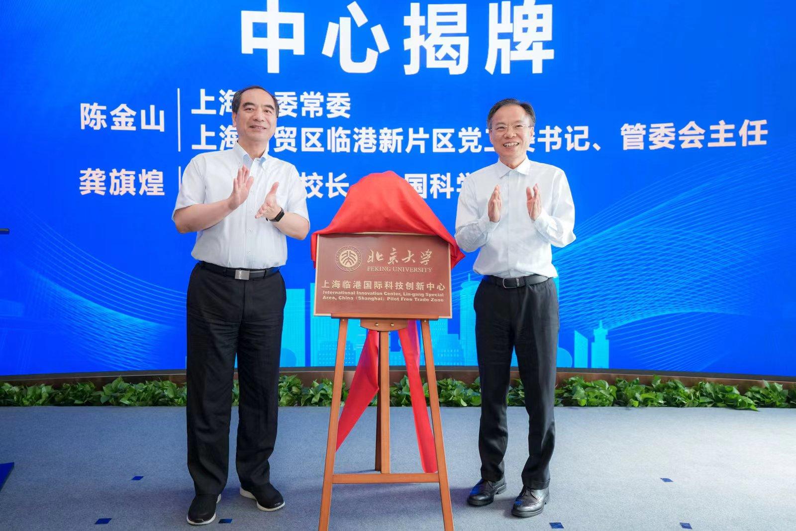随后,龚旗煌、陈金山共同为北京大学上海临港国际科技创新中心揭牌。