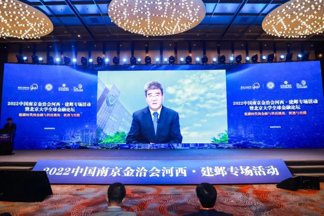 6日上午,2022北京大学全球金融论坛正式开幕,同时也是2022中国南京金洽会河西·建邺专场活动。北京大学校务委员会副主任、汇丰商学院创院院长、北京大学校友会副会长、北京大学金融校友联合会会长海闻因疫情原因无法到场,通过视频致辞。随后,南京市委常委、市政府副市长邓智毅在现场致辞。