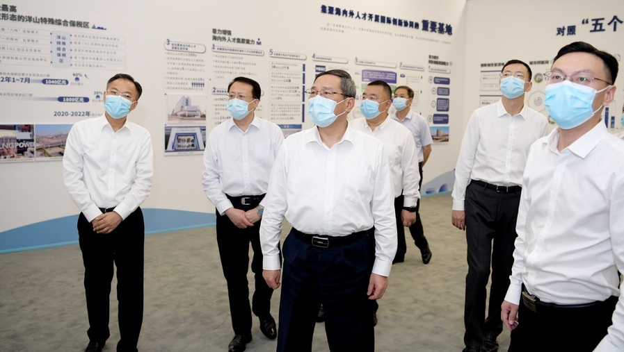 调研期间,李强实地察看了临港新片区改革创新、实践探索的最新进展。在以“海洋+智能制造”为产业特色的市级特色园区海立方科技园,市领导先后走进园区党群服务中心、留学生创业园,了解园区“党建+科创”孵化平台建设、人才服务等情况,与汇聚于此的中外创新创业人才亲切交流,勉励大家牢牢把握临港新片区这一国家战略的重大机遇,找准方向、发挥优势、聚力突破,在这片创新创业热土施展才华、实现价值,并叮嘱园区负责同志要持续优化营商环境、营造良好创新生态,提供更精准的助企政策、高水平的贴心服务,让各类人才安心扎根临港、心无旁骛创新创业。李强指出,要紧扣独立综合性节点城市定位,进一步加强整体规划、整体设计,做强功能、凸显特色、提升品质,形成更加鲜明的产业标识,打造更具标志性的滨海地标,加快建设开放创新、智慧生态、产城融合、宜业宜居的现代化新城。