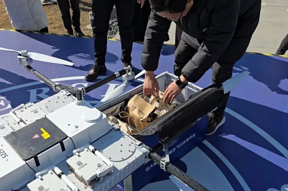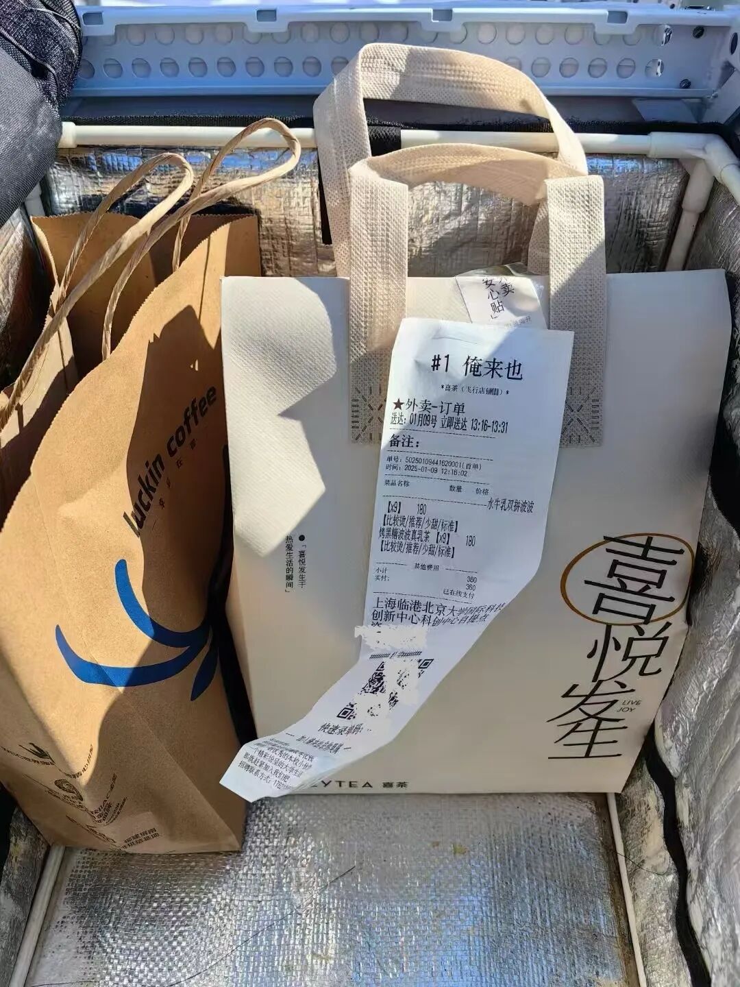 会议期间,中心通过无人机外卖点喜茶奶茶、瑞幸咖啡,对北大临港融合飞行示范平台进行了充分展示。