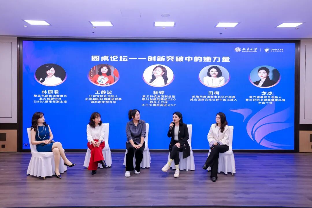 在第一场“创新突破中的她力量”主题圆桌中,挚美电商集团董事长林丽君、公司宝联合创始人王静波、索云科技副总裁杨婷、敦煌网集团董事长执行助理&她山国际女性社群中国主理人田梅、南方健康联合创始人龙珑等嘉宾围绕“破界时刻、柔韧之力、生态共建”等话题,共话女性创新突破中的勇气、智慧与无限可能。她们依次分享了职业生涯中最具突破性的瞬间,并探讨了女性如何将特质转化为更大的优势、如何构建更有支撑力的创新生态。