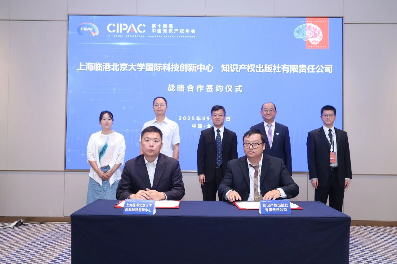 9月12日上午,第十四届中国知识产权年会期间,知识产权出版社有限责任公司(IPPH)在北京国家会议中心成功举办“中知慧融·智创未来”专利产业化研讨会暨战略合作签约仪式,上海临港北京大学国际科技创新中心(下称“北大临港科创中心”或“中心”)作为重要合作方受邀参加。本次会议聚焦“人工智能+”背景下的专利产业化发展,旨在探索科技创新、产业转化与金融支持协同推进的新模式,助力经济高质量发展。来自政府、产业、高校、服务机构的近30位代表参加了会议。知识产权出版社党委副书记、副总经理李程出席会议并致辞。
