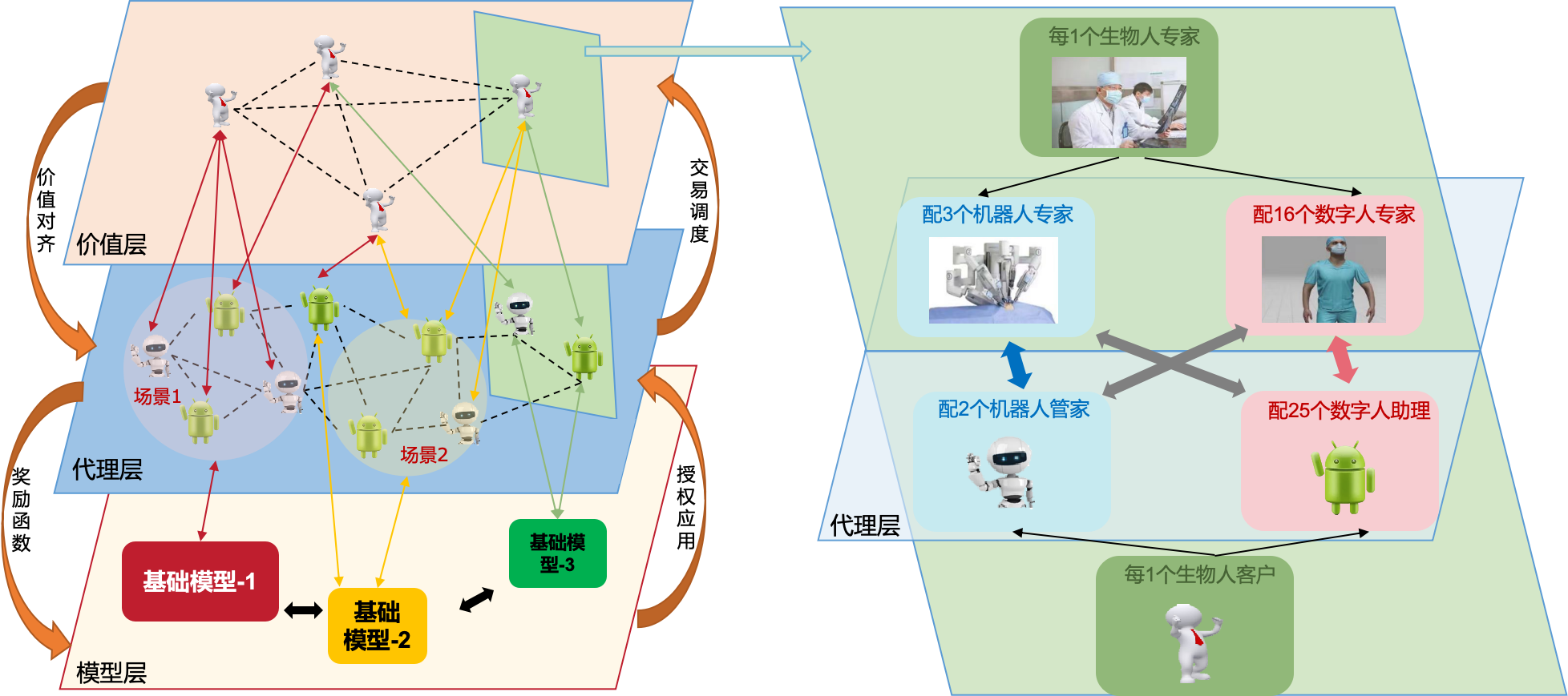中心专注于研究“可信多智能体平行学习和协同决策技术架构”,并联合“智道元(上海)数字技术有限公司”研发“以人为中心的多智能体交互操作系统”, 推动 “广义Scaling Law”。